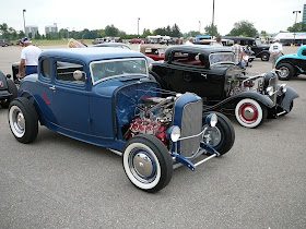 now, you have to remember that this Ford sponsored event back in August 2007, was a celebration of 75 years since the flathead V8 was introduced, as well as celebration of the one and only, all time iconic hot rod..the deuce...so in these pics from my camera, you can get a bit of an overview of how that weekend went down...Friday was the usual gathering of the early arrivals in the host hotel carpark...Friday night was a get-together dinner, where we 4, Darryl, Dianne, Anita and I were recognised for coming to the event from Australia..[but i'm sure there were others from just as far, and different countries]...Saturday and Sunday were taken up with more shows, visits to the Ford headquarters, visits to Dearborn Vilage and museum, visits to Henry Fords home on the lake..all this included if you were an entrant....it was a very good weekend, and I was surprised that so little people attended, considering the weekend before, and two states drive, was the Street Rod Nats..still, smaller crowds made it all the more pleasureable for those attending...I will add text to some of these pics, but most were just "point and click"...enjoy!